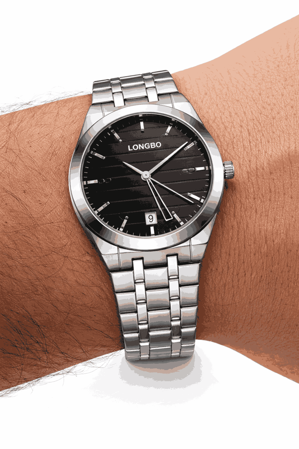 Black Dial Stainless Steel Watch with clean minimalist layout