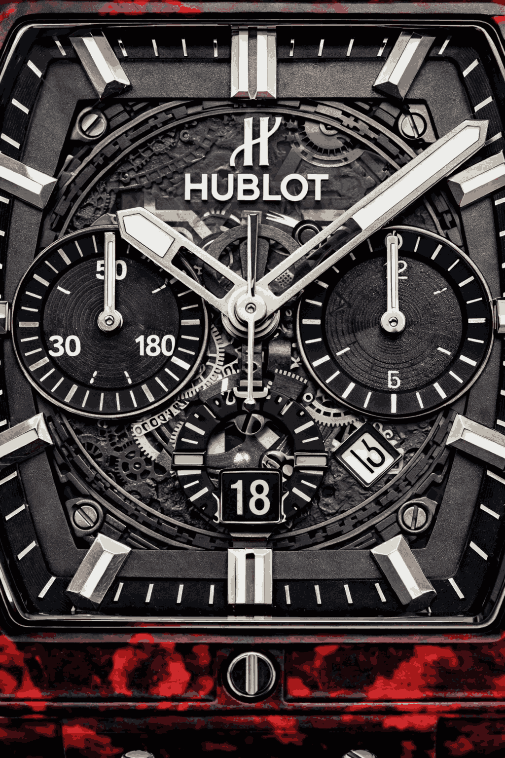Hublot Red Skeleton Dial with visible inner details